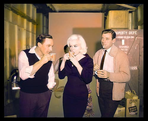 J’avais Marilyn pour moi tout seul et je ne le savais pas. (…) Un jour, elle est vraiment fatiguée, elle me prévient qu’elle sera hors d’état de répéter. Et moi, j’ai une scène délicate sur les bras. Je m’apprête à rentrer chez moi et à potasser de mon côté. Je croise Mme Strasberg, la duègne, qui me dit : « Allez donc dire bonsoir à Marilyn, vous lui ferez plaisir parce qu’elle est ennuyée de ne pas pouvoir travailler… » J’y vais. (…) Il me reste une demi-page à réviser pour le lendemain. Je lui fais le « kissing good night. » Et sa tête pivote, mes lèvres dérapent. C’est un baiser superbe, tendre. Je suis à moitié sonné, je bafouille, je me redresse, déjà envahi par la culpabilité, me demandant ce qu’il m’arrive. Le lendemain, les choses paraissent d’abord rentrées dans l’ordre. Nous travaillons. Mais c’est un incendie, un déchirement, je n’essaie même plus de calmer le jeu.